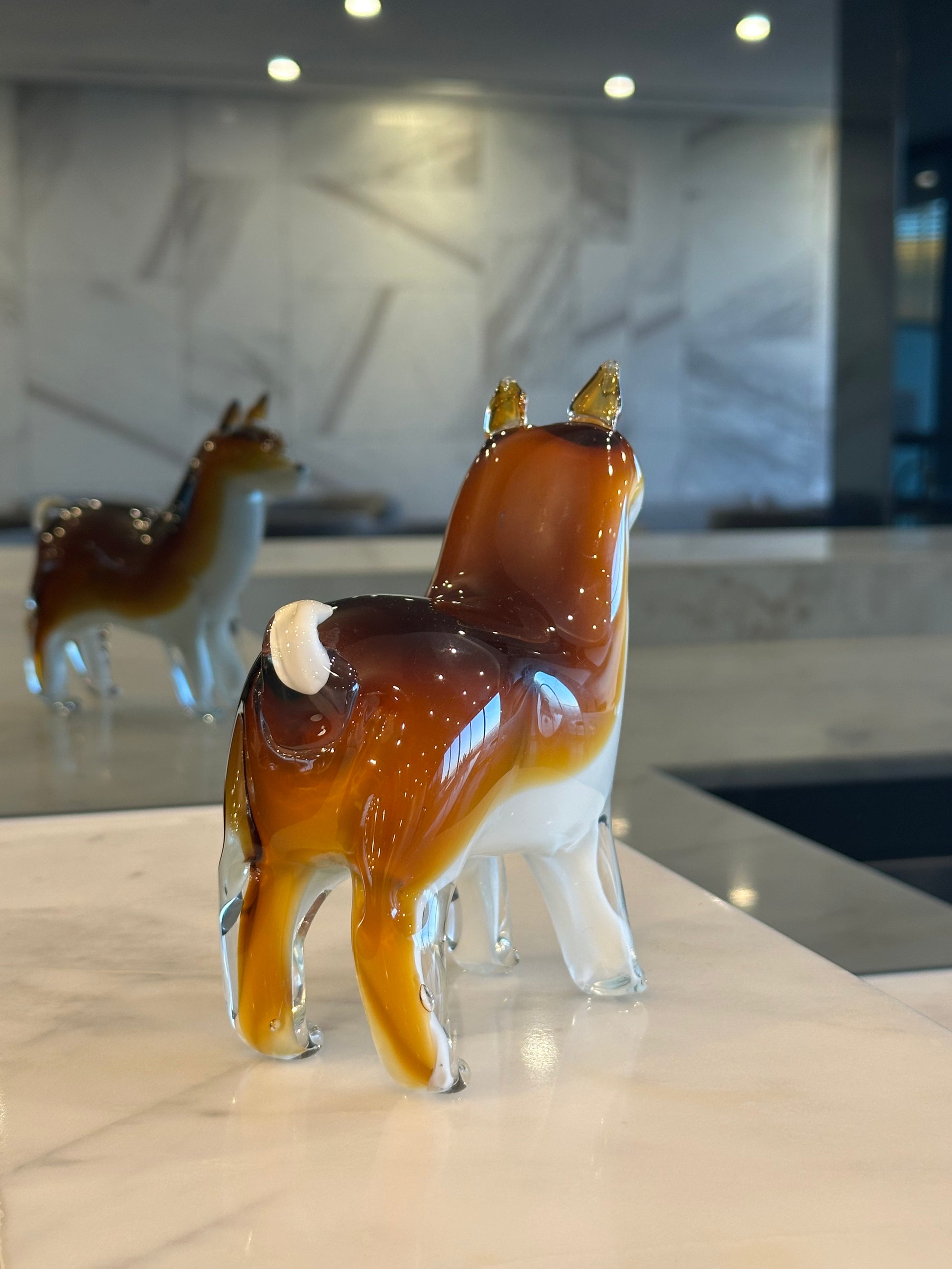 Named Hiro, meaning “generous” or “abundant” in Japanese, this piece draws inspiration from the Shiba Inu’s rich cultural heritage and distinct personality. The design balances strength and softness, with clean, confident lines evoking the dog’s proud posture, while the warm amber tones melt into gentle creams that mirror its famously expressive coat. Kenjasper imagines Hiro as both guardian and friend—a figure of watchful calm and gentle warmth.