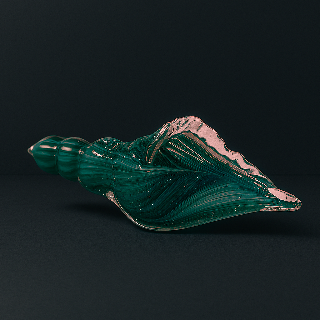 Inspired by the ocean’s shifting hues and the mystery of deep waters, the Mini Emerald Conch Shell pairs a graceful organic form with undulating lines of dark green and vivid blue. The flowing pattern evokes waves in motion, while subtle color shifts hint at sunlight dancing beneath the sea’s surface. Compact yet captivating, it’s a perfect accent—serene, striking, and full of coastal charm.