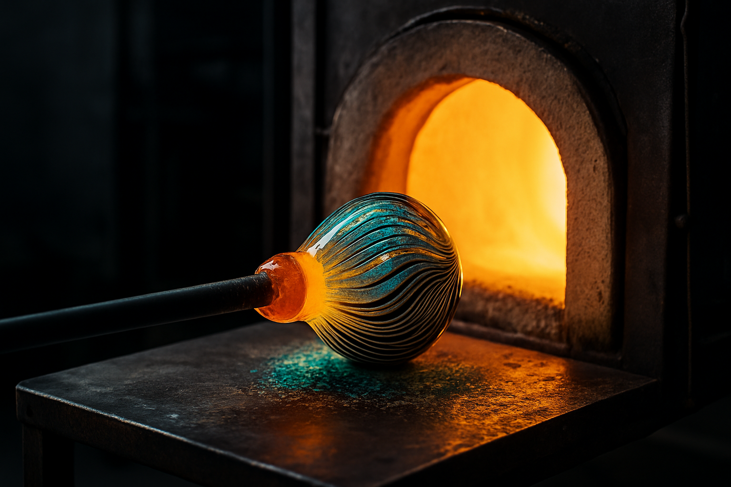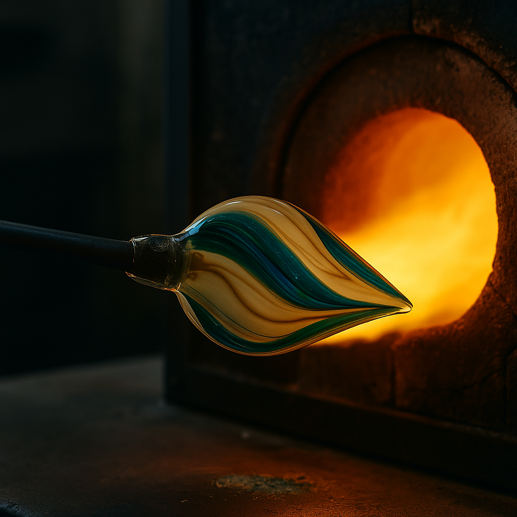 The glass is heated to over 1,000°C, and as it begins to soften, it is expertly shaped by hand, with every swirl and curve revealing the personal touch of the craftsman.