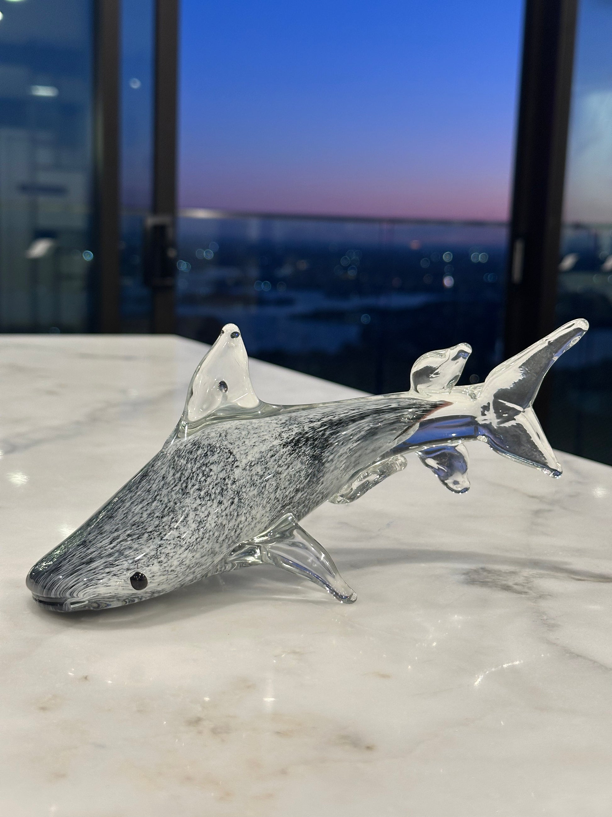Inspired by the whale shark’s immense presence and tranquil demeanour, the Sandglass Whale Shark merges natural form with elemental texture. The body is sculpted with a soft taper, sweeping from a broad head to a tail of delicate transparency. Its mottled surface resembles windblown sand or speckled ocean stone, grounding the piece in earth and sea alike. Kenjasper imagines the whale shark not as a predator, but as a drifting colossus—ancient, calm, and wise.